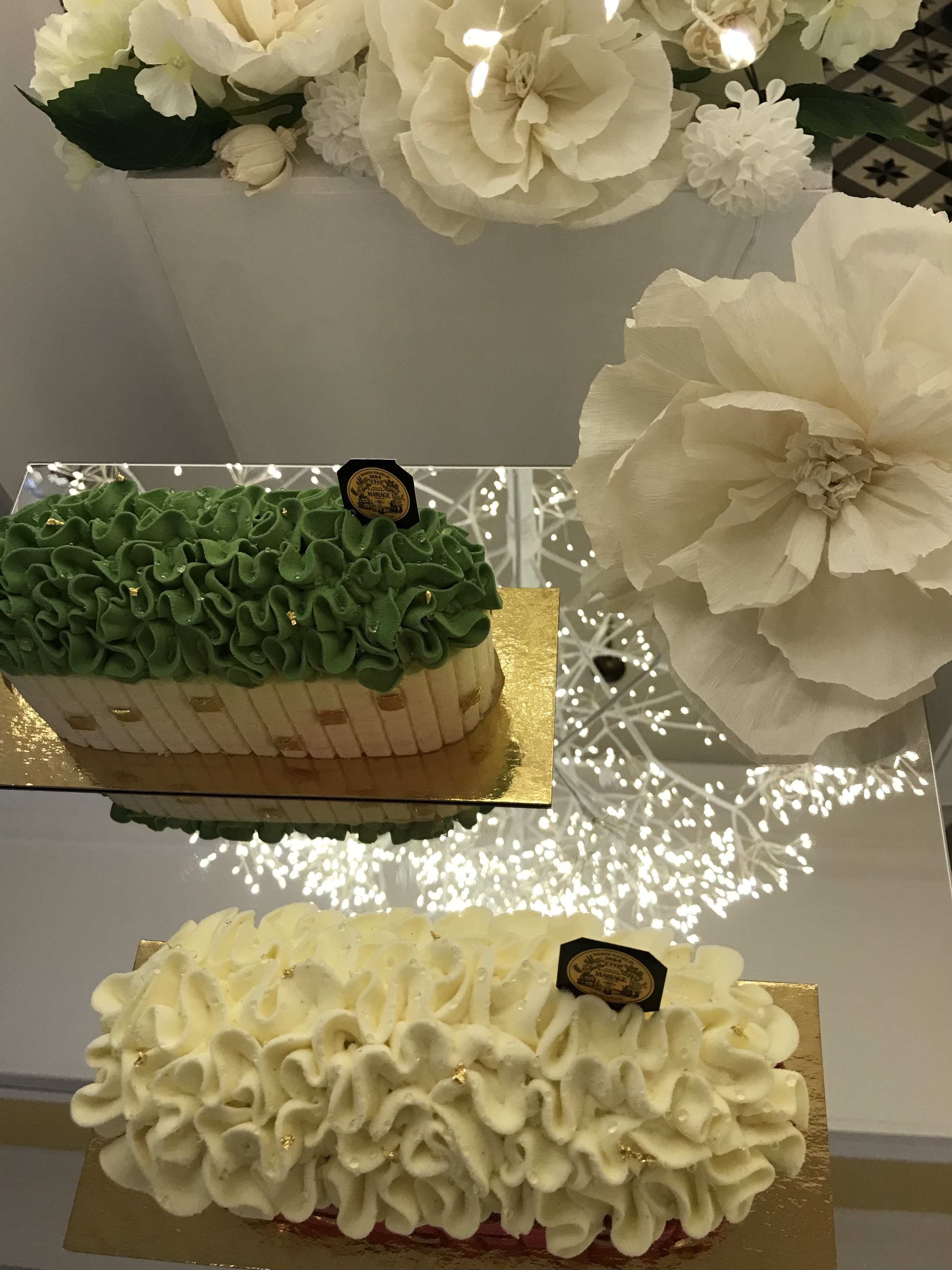 L’expertise de la haute pâtisserie au thé de MARIAGE FRÈRES, s’exprime tout particulièrement avec le thé Matcha, que la maison familiale connaît de très longue date, sachant désormais en sublimer toute les saveurs. Une mousse crémeuse au yuzu du Japon enrobe un pain de Gènes biscuité aux noisettes caramélisées et au thé MATCHA, vivifié par un confit au citron- yuzu et couronné par une chantilly légère au thé MATCHA et à la vanille Bourbon. De vert et de blanc vêtue, cette bûche incomparable de magie, a été façonnée en pleine cœur du Marais à Paris, grâce à un savoir-faire inégalé.