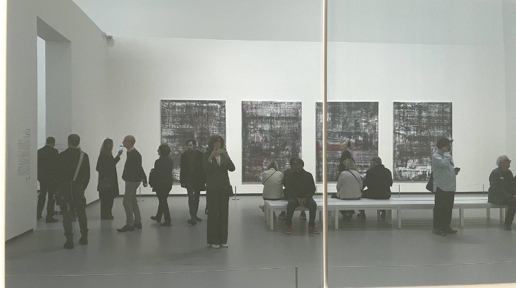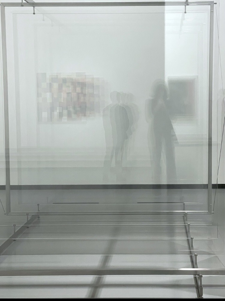 Ainsi, au cours de la déambulation dans l’œuvre de Gerhard Richter nous sommes amenés à croiser un certain nombre de surfaces réfléchissantes, vitres, miroir, métal poli, qui nous incluent bien malgré nous dans l’œuvre de l’artiste. Magnifique et troublant voyage qui nous interroge sur ce que nous voyons et notre place en tant que visiteur