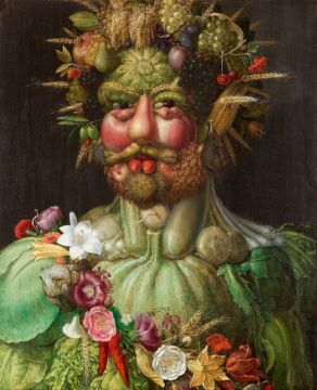 A gauche :Giuseppe Arcimboldo (1527-1593) Portrait de Rabelais |